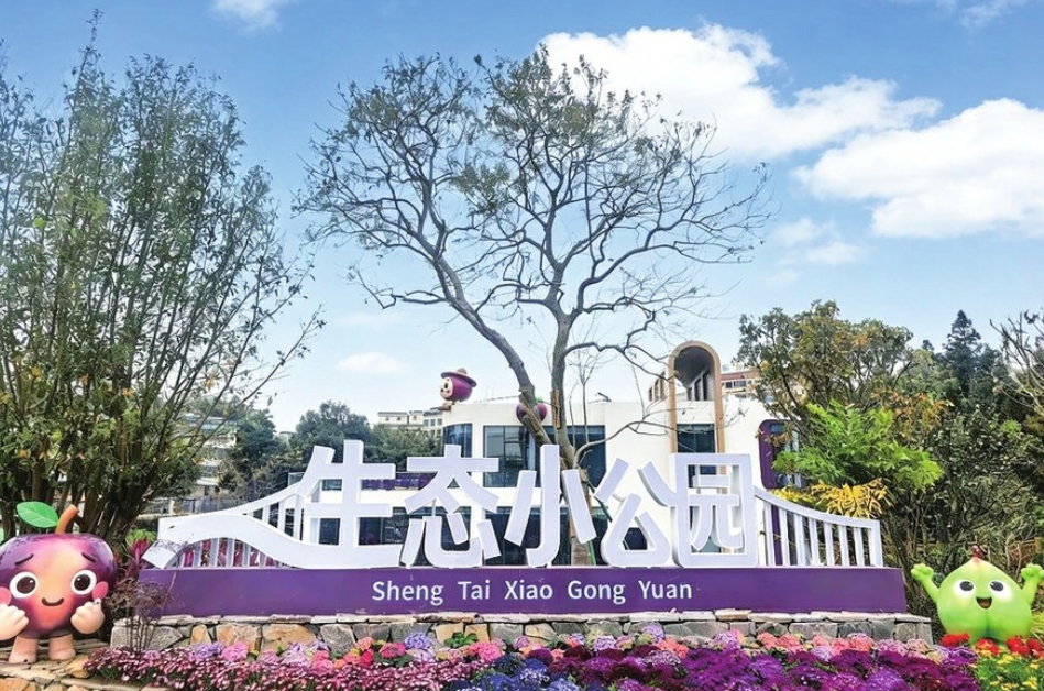 而白石的惊喜不止于此。在开发区闲置地新建的生态小公园里,缤纷的园林、现代艺术气息的主体建筑、灵动可爱的信宜李和红鹦桃IP打卡点,营造出浪漫惊艳的景致。