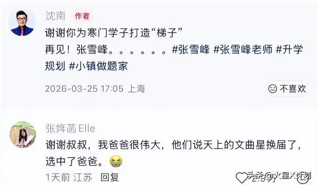 告别式当天,有好友点赞了网友问“是否见到张雪峰妻子李丽婧和女儿”的评论,证实孩子后来有露面,身边有妈妈陪伴。